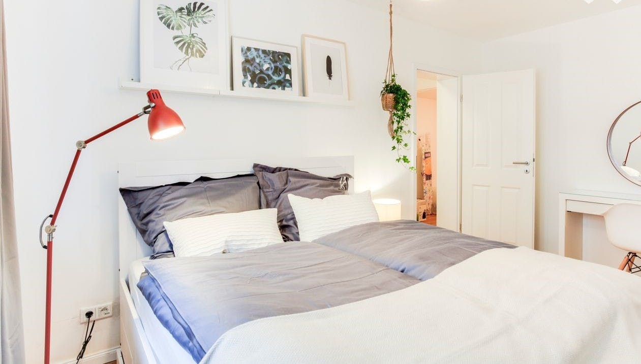 This luxurious 75m2 apartment is completely new renovated. All rooms are equipped with a parquet flooring. The flat is bright and spacious and provides enough room for up to 4 persons. The flat is located on the first floor and there is also an elevator in the building. The master bedroom provides a king size (180x200) bed with high quality innerspring mattresses and a walk-in closet (seperate room) with plenty of room for your garderobe. The second bedroom is equipped with 2 beds (á 90x200) ... About the area: The flat is located in Düsseldorf-Pempelfort -One of the most desirable neighborhoods in Düsseldorf. The...