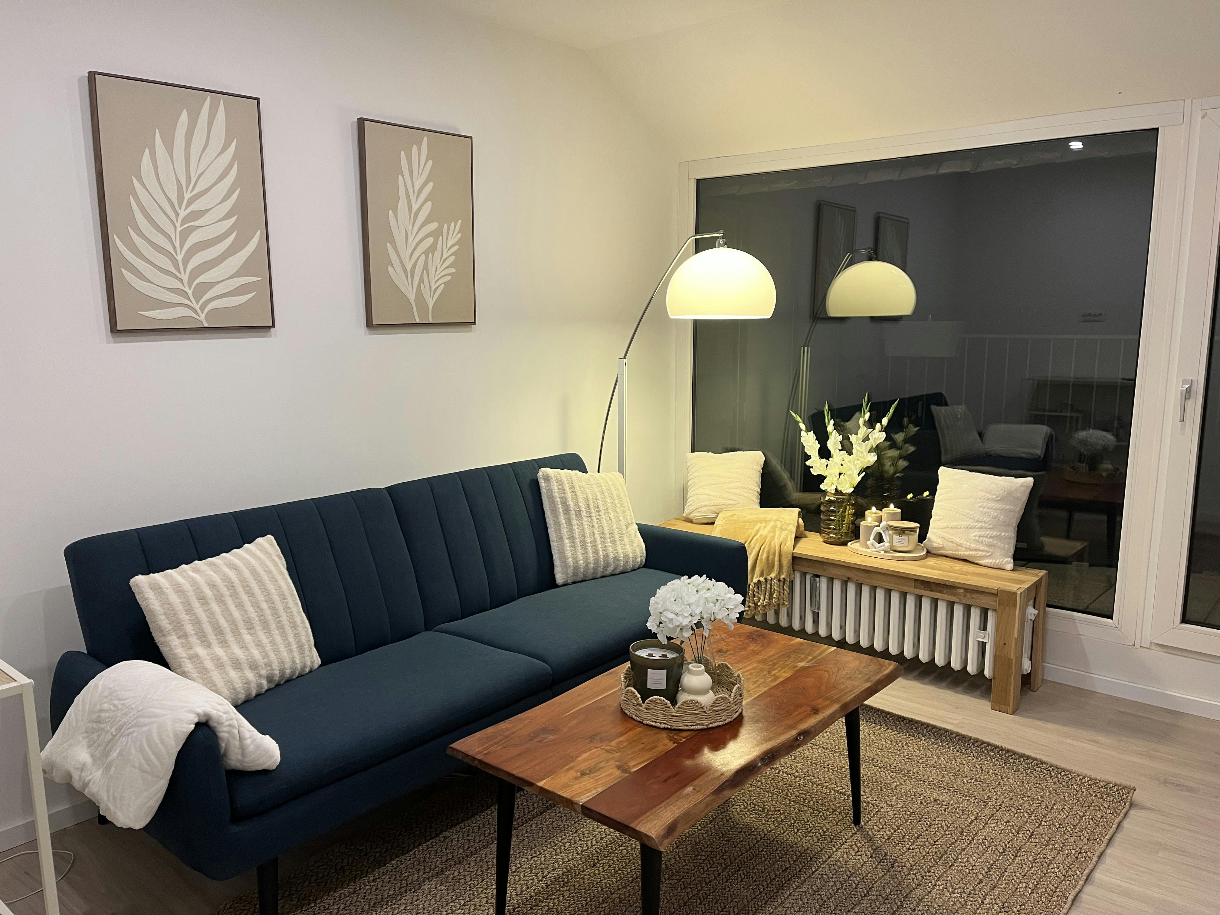 Die Wohnung befindet sich im Stadtteill Unterrath. Zu Fuß erreichen Sie den Flughafen. Messe erreicht man in 10 Minuten mit dem Bus/Bahn die sich direkt vor der Haustür befinden. Ebenfalls in 15 Minuten befindet sich das Stadtzentrum. Supermärkte,Drogeriemarkt,Apotheke, Bank, Schwimmbad, Bibliothek, Restaurants, Ärzte sind alle direkt fußläufig zu erreichen. Die Wohnung wurde kernsaniert und voll ausgestattet. Eine Waschmaschine, Spülmaschine, komplett ausgestattete Küche mit Kaffeemaschine, Geschirr und Backkofen. Ein Kühlschrank und Microwelle stehen selbstverständlich zur Verfügung. Das Bad hat auch eine Badewanne die zum entspannen einlädt. Eine tolle große Terasse mit einem Grill stehen bereit und sie bietet einen tollen...