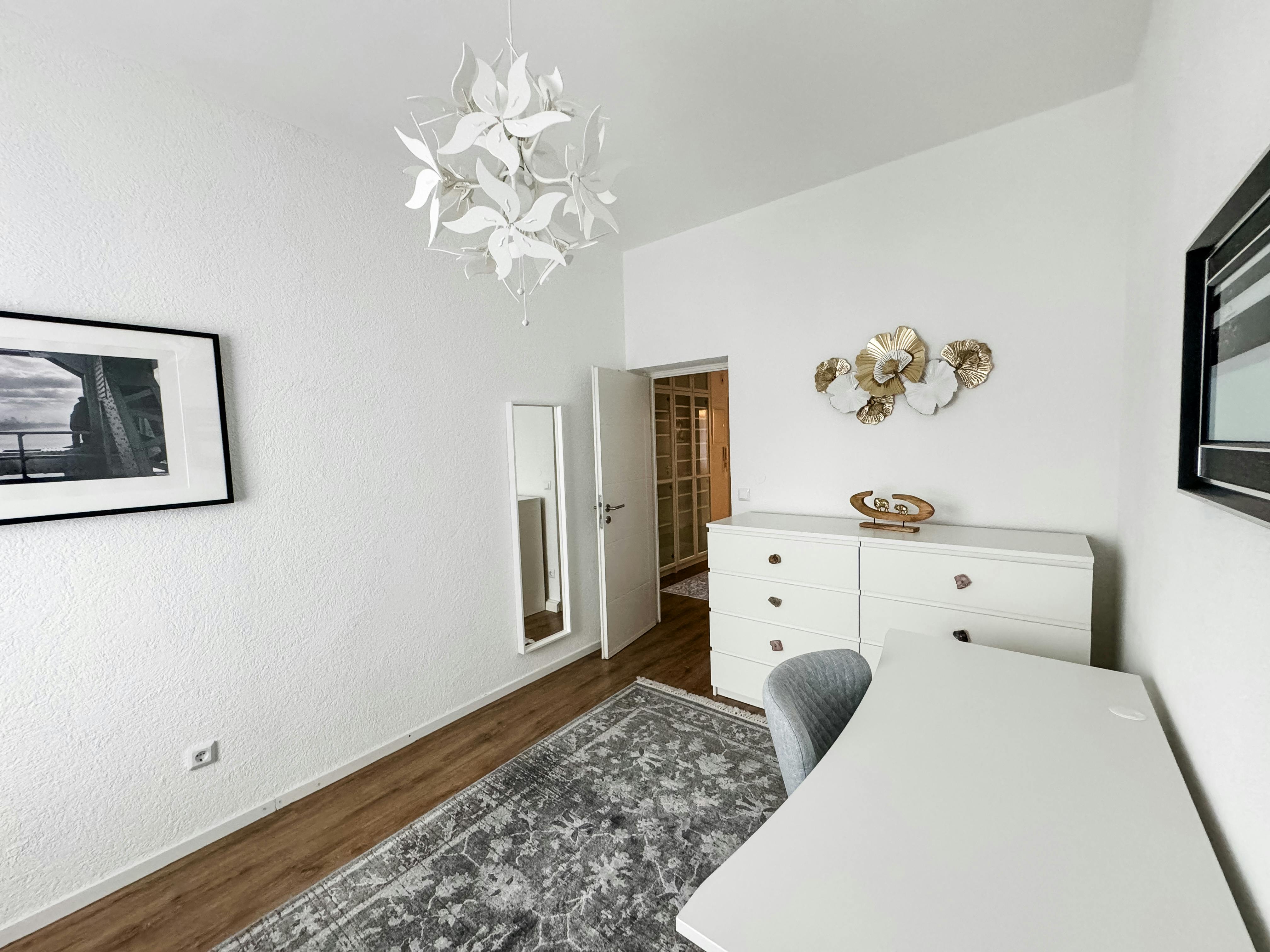 Die hier angebotene 3 Zimmer Wohnung befindet sich in einem sehr gepflegtem Mehrfamilienhaus in Düsseldorf-Pempelfort. Die stilvoll eingerichtete Wohnung verfügt über ein modernes Wohn- und Esszimmer, ein Duschbad, einer hochwertig ausgestatteten Küche und einer Diele. Besonders zu erwähnen ist der gemütliche Balkon welcher zum ruhigen Innenhof ausgerichtet ist. Alle Räume sind vollausgestattet und bieten alles für den alltäglichen Gebrauch. Die Küche verfügt über Kochutensilien, Ceranfeld, Spülmaschine, einer Senseo Kaffeemaschine uvm.. Das Schlafzimmer verfügt über ein 180er Bett und das Gäste.-Kinderzimmer über eine Couch mit Schlaffunktion. Das Wohnzimmer überzeugt mit einer gemütlichen Couch, einem Tisch mit zwei Stühlen und einer Sitzbank. Das moderne Bad ist mit...