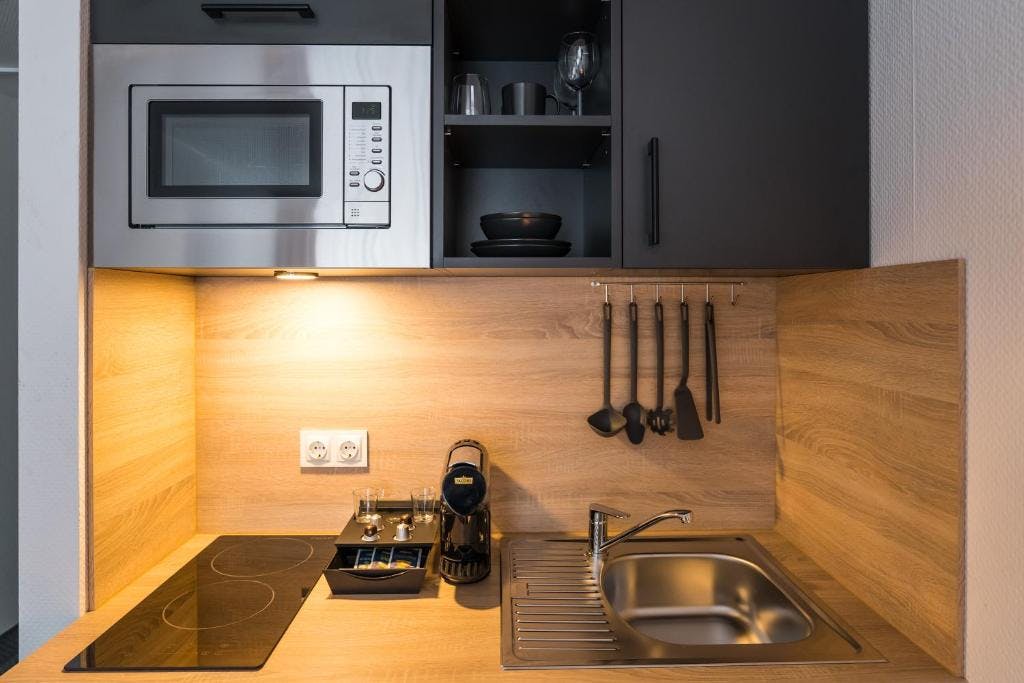 ? Modern apartments in the heart of Düsseldorf! Located in the heart of Düsseldorf, our modern apartments offer everything you need for a comfortable stay. Each room features a fully equipped kitchenette, complete with two induction cooktops, a dishwasher, a fridge and freezer, a microwave, and even a Nespresso machine and kettle for that perfect cup of coffee. ?️ The cozy seating area is perfect for relaxing, and the flat-screen TV provides entertainment during your downtime. The private bathroom comes with a refreshing shower and free toiletries to ensure your comfort throughout your stay. ? The legendary Old Town, known for...