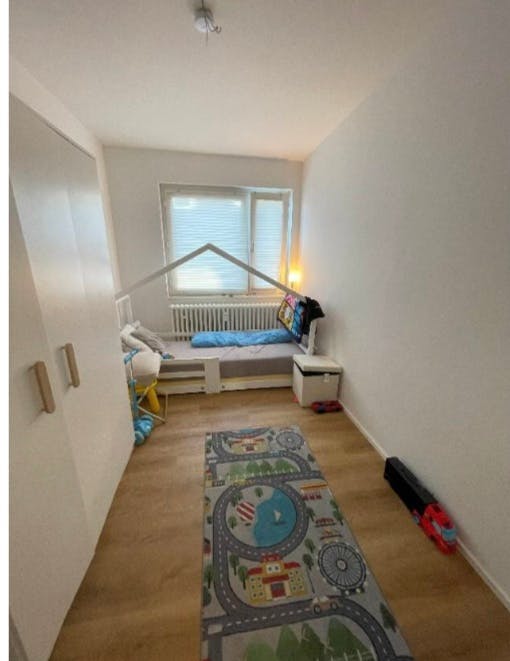 English: Apartment: The 63 sqm (approx.) 3-room apartment is located on the 3rd floor of a well-maintained multi-family house in Düsseldorf-Rath and consists of: 1 bedroom 1 office or children's room 1 living room 1 bathroom 1 kitchen including fitted kitchen and storage room 1 hallway 1 cellar room 1 garage parking space (in the courtyard) The hallway provides access to all rooms of the apartment. The kitchen and living room face the courtyard, and the bedrooms face the quiet one-way street. Each room has double-glazed windows, ensuring all rooms are quiet and well-insulated. The kitchen also has a small storage room. The apartment also boasts a covered south-west-facing balcony, which is accessible...