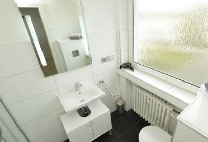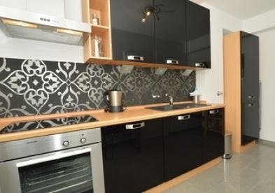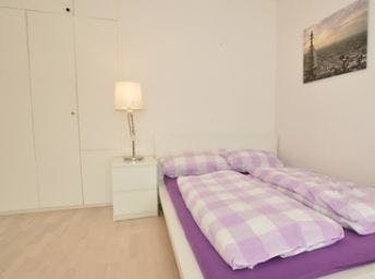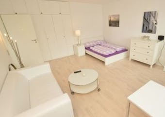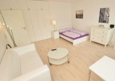 Schönes Apartment im 5. OG eines Mehrfamilienhauses, zentral gelegen. Großzügiger Wohn-Schlafbereich mit Balkon, Couch, Kommode und Doppelbett. Der Zugang zum Balkon erfolgt über die Küche. Die Küche ist elegant in schwarz gehalten und mit allen notwendigen Elektrogeräten, als auch der weiteren Ausstattung für den täglichen Bedarf versehen. Eine Spülmaschine rundet die Ausstattung der Küche ab. Das Bad ist in weiß gehalten und mit Dusche ausgestattet. Hier findet sich auch die Waschmaschine. Im gesamten Wohnraum ist ein helles Parkett verlegt. ---------------------------------------------------------------------------------------------------------------- Bitte beachten Sie, dass HousingAnywhere eine Online-Buchungsplattform ist. Daher ist es nicht möglich, Kontaktdaten auszutauschen und Besichtigungen anzubieten. Wenn Sie diese Unterkunft reservieren möchten, senden...