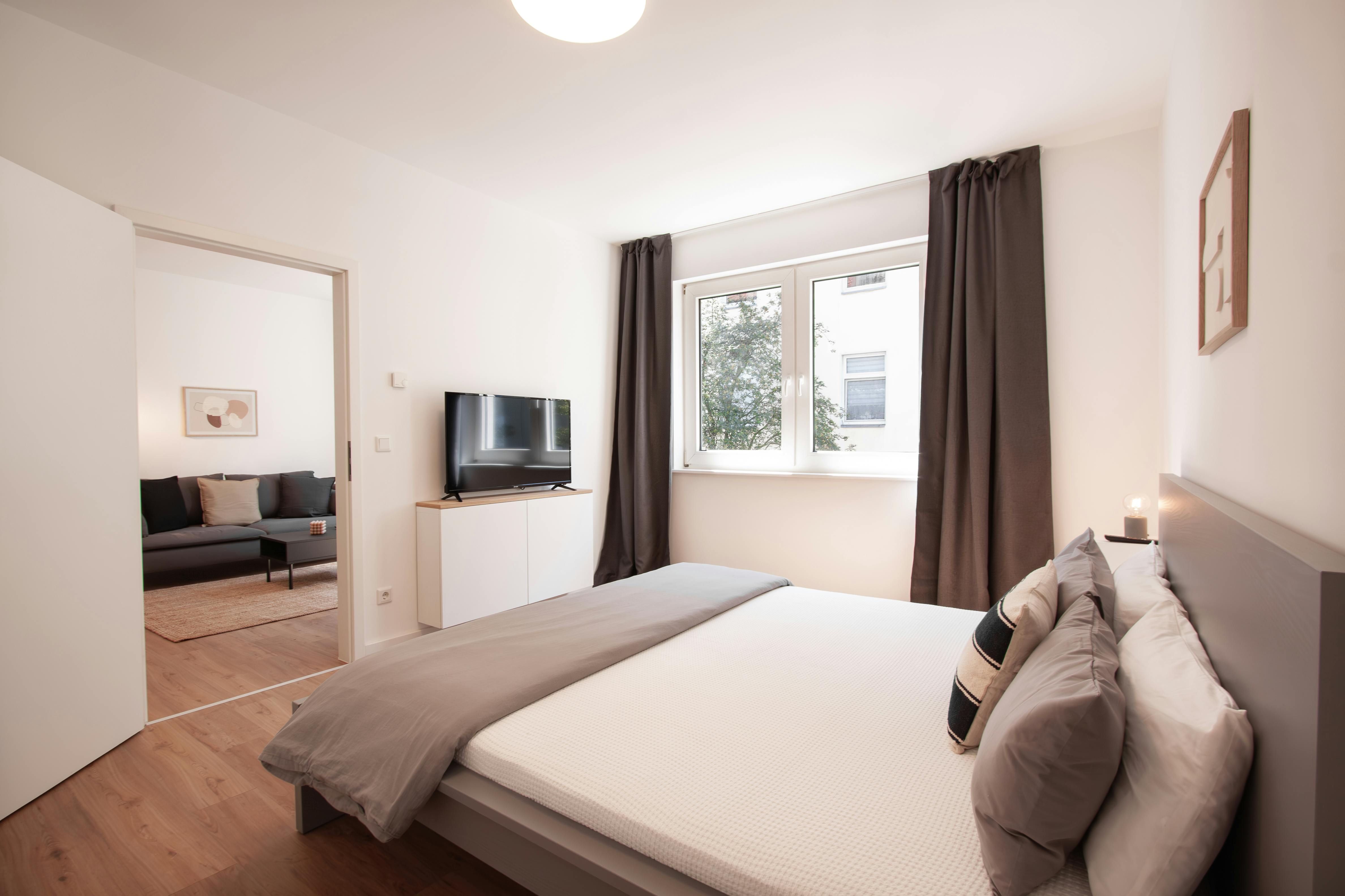 Die hier angebotene 2 Zimmer Wohnung befindet sich in einem sehr gepflegtem Mehrfamilienhaus in Düsseldorf-Rath. Die stilvoll eingerichtete Wohnung verfügt über ein modernes Wohn- und Esszimmer, ein Duschbad einer hochwertig ausgestatteten Küche und einer Diele. Besonders zu erwähnen ist die Fußbodenheizung, die in der Wohnung für eine angenehme Wärme sorgt! Des weiteren verfügt die Wohnung über einen Sonnenbalkon. Alle Räume sind vollausgestattet und bieten alles für den alltäglichen Gebrauch. Die Küche verfügt über Kochutensilien, Ceranfeld, Spülmaschine, einer Senseo Kaffeemaschine uvm.. Das Schlafzimmer verfügt über ein 160er Bett und einem geräumigen Kleiderschrank. Das Wohnzimmer überzeugt mit einer gemütlichen Couch, einem Tisch mit 3 Stühlen. Das Bad ist mit...