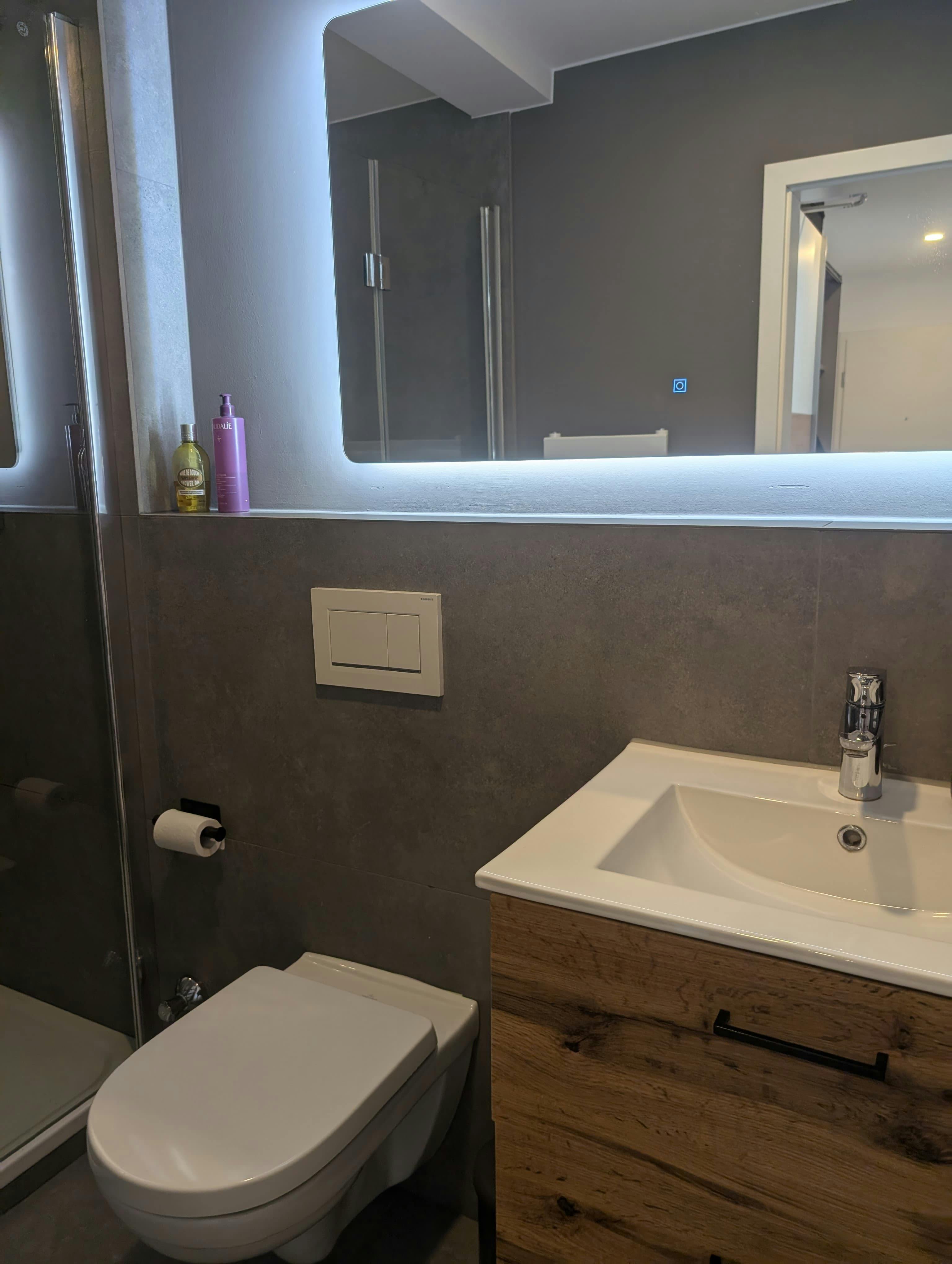 ? Address: Gilbachstraße , 40219 Düsseldorf ? Top location – just 1 minute walk to the heart of Medienhafen, surrounded by stunning modern architecture, stylish cafés and waterfront views. ________________________________________ ? The Space: 60 m2 of Pure Comfort • Spacious living room with cozy sofa, dining nook, designer lighting • Quiet bedroom facing a green courtyard – perfect for deep sleep • Dedicated office with ergonomic desk – ideal for remote work • Contemporary bathroom with walk-in rain shower and LED mirror • Fully furnished designer kitchen: oven, stove, dishwasher, washing machine • High quality vinyl flooring, clean white walls,...