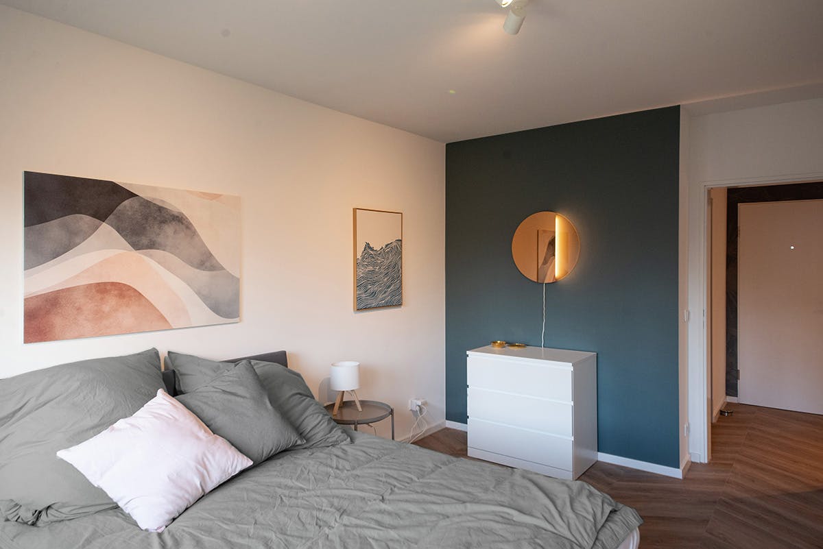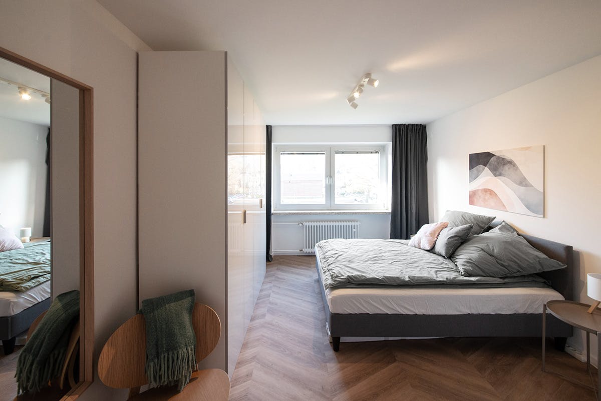 Objektbeschreibung: Helles und modernes full serviced Apartment in Top-Lage. Optimal für alle, die unkompliziertes Wohnen suchen. Mit allem Komfort und optimaler Anbindung. Ausstattung: – 65 qm – 2 Zimmer – Komplett möbliert und ausgestattet – Hochwertige Einbauküche – Modernes Duschbad – Aufzug – Waschmaschine – Spülmaschine – 1,60 m Doppelbett – 65 Zoll Smart TV – Apple TV – 50 Mbit/s W-LAN – Zweiwöchentliche Reinigung optional Lage: Oberkassel – Düsseldorfs schönster Stadtteil mit urbaner Szene und Anspruch. Optimale Anbindung gepaart mit perfekter Nahversorgung. Vielfältige Gastronomie, unzählige Ladenlokale, Ärzte, Apotheken und alle Annehmlichkeiten des Alltags. Stadt und Rhein in unmittelbarer Nähe. Genau hier liegt die stilvoll und komplett eingerichtete Wohnung mit allem Komfort und grünem Blick.